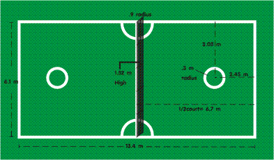 1.1 สนาม พื้นที่ของสนามมีความยาว 13.40 เมตร และกว้าง 6.10